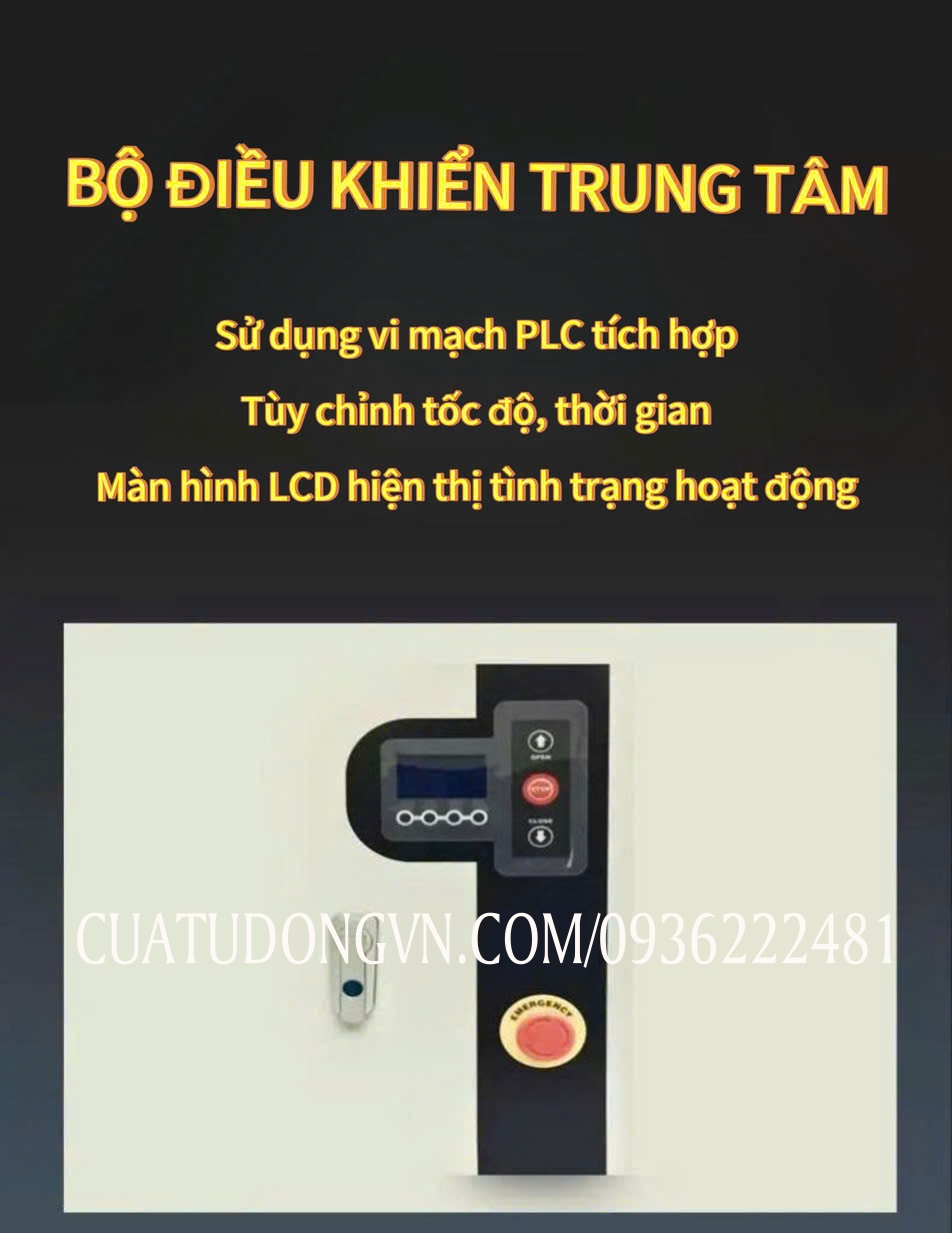 | Hệ thống an toàn | Cảm biến quang điện, cảm biến va chạm, tự đảo chiều khi gặp vật cản, mở khẩn cấp khi mất điện |