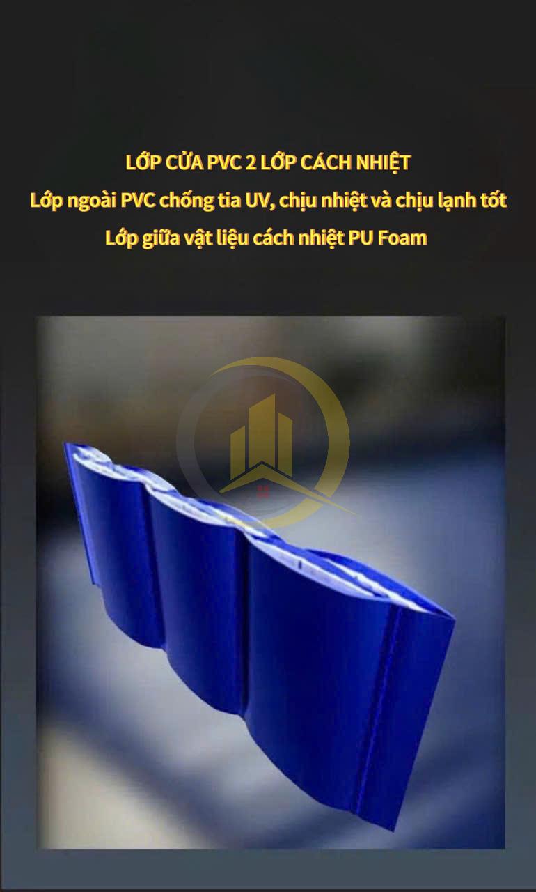 | Màn cửa | Màng PVC chịu lực (có lớp foam cách nhiệt giữa các lớp), phủ 2 mặt PVC chống thấm, chịu lạnh |